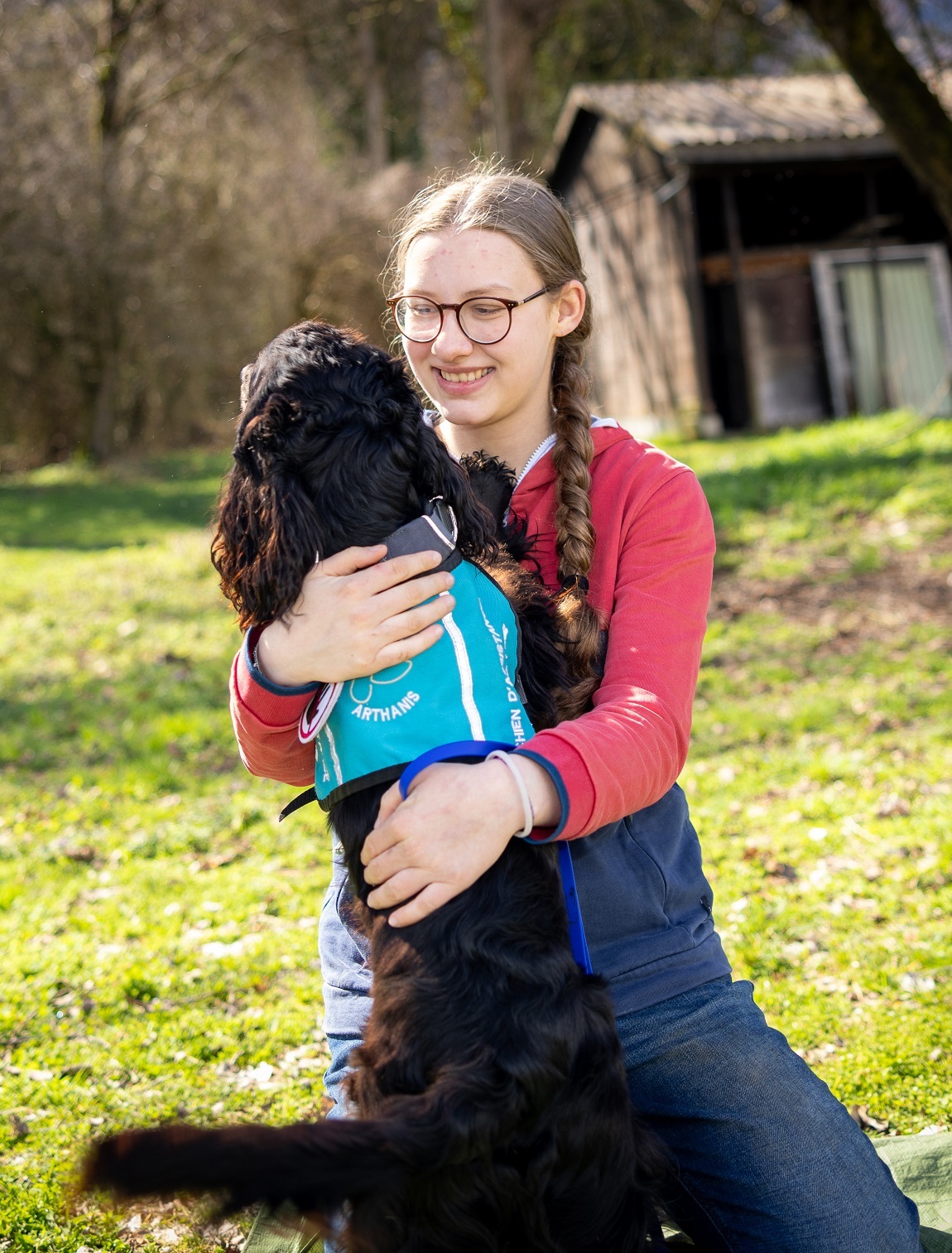 Depuis trois mois, Ella, jeune étudiante de 16 ans, a vu son quotidien transformé par l’arrivée dans sa vie de Zéphyr, un chien d’assistance qui lui a été remis par la Fondation Arthanis. Bien plus qu’un compagnon, il l’aide à faire face aux défis que lui imposent ses troubles autistiques.