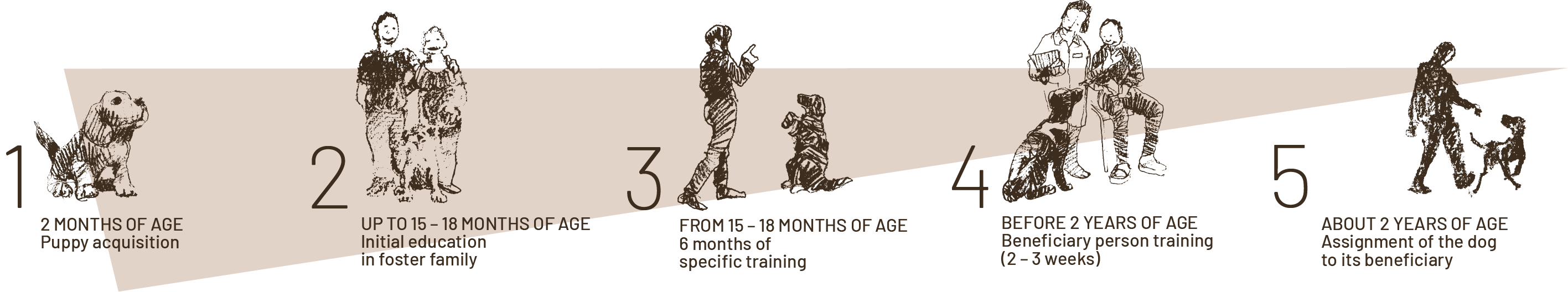 - Placement in foster families for an initial education and socialisation period of 12 to 15 months