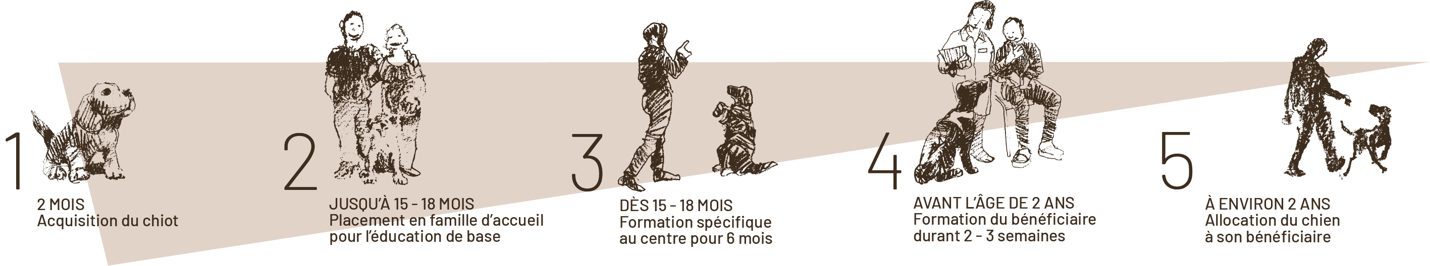 De la naissance à leur allocation, les chiens suivent un parcours riche et varié.